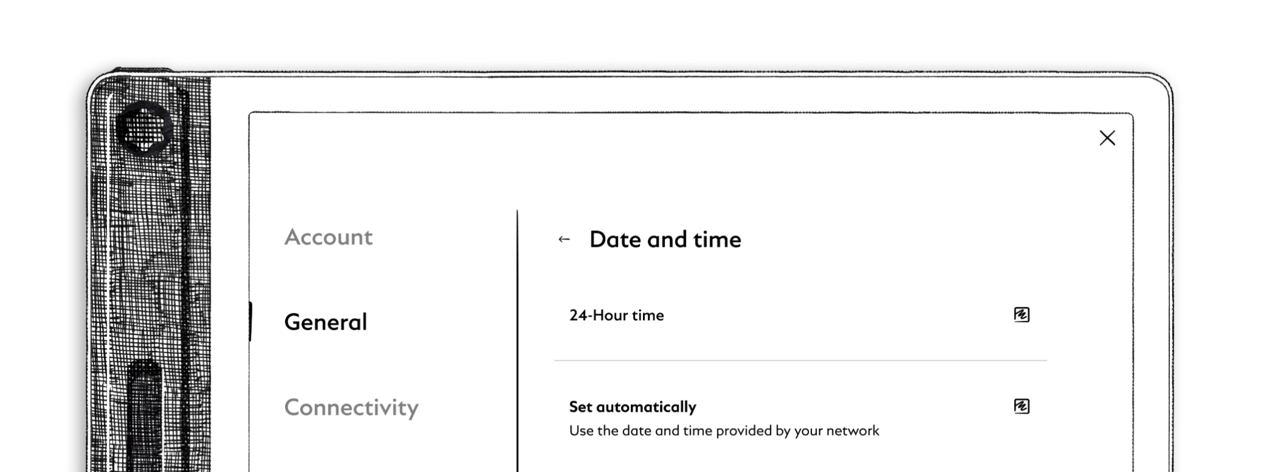 Für den komfortabelsten Ablauf kann Ihr Digital Paper Datum und Uhrzeit automatisch über WLAN synchronisieren. Sobald diese Option aktiviert ist, passt sich das Gerät an Ihre gewählte Zeitzone an.