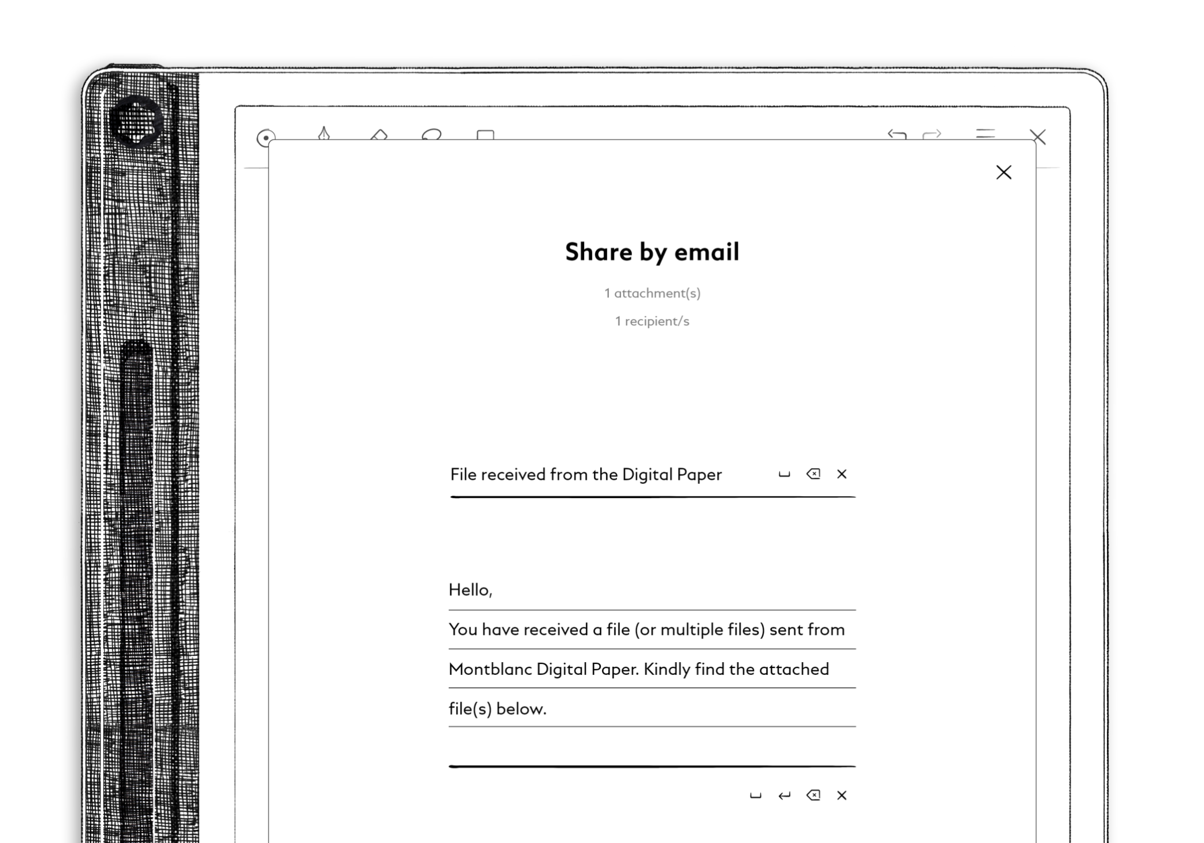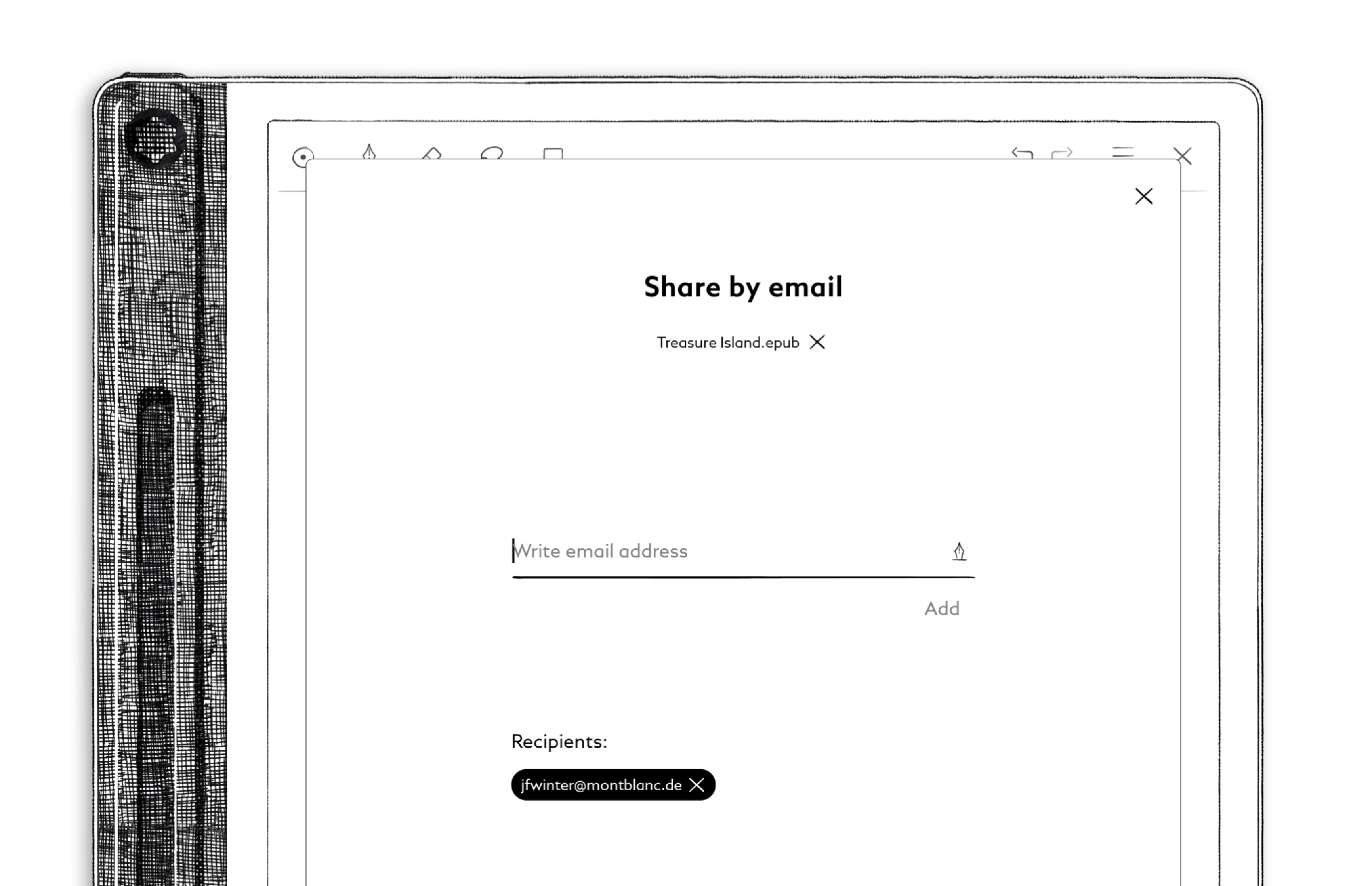 - Geben Sie die E-Mail-Adresse des Empfängers ein – entweder mit Ihrem Montblanc Digital Pen oder über die Tastatur