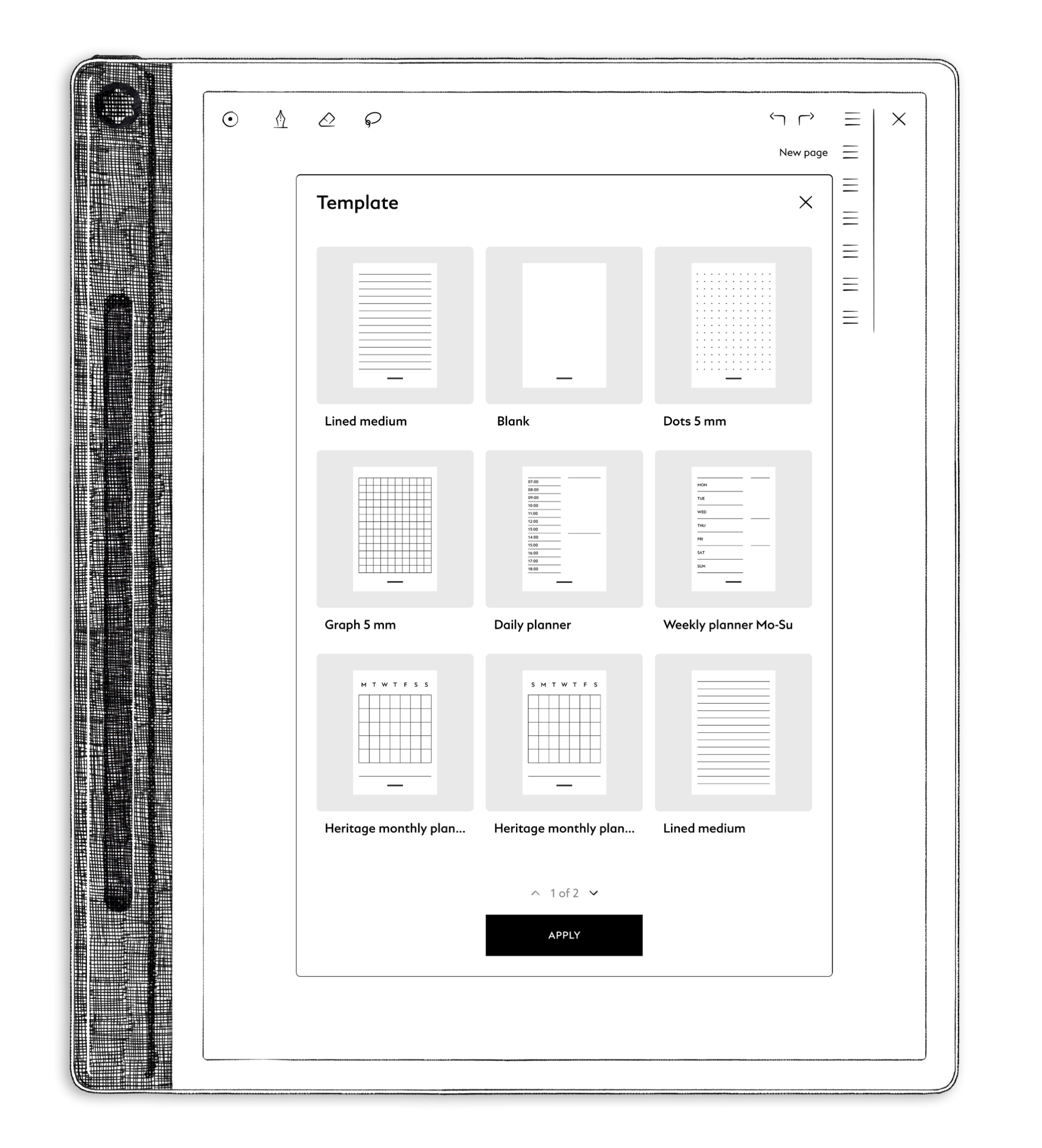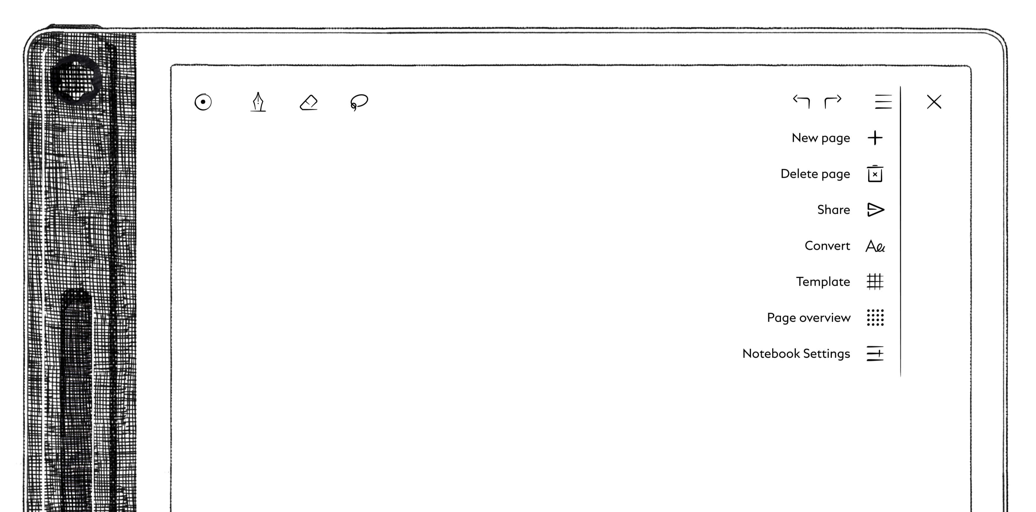 - New page: Add a new page instantly at the end of your Notebook. You’ll be redirected to it immediately, and it can later be moved if needed through Page overview.