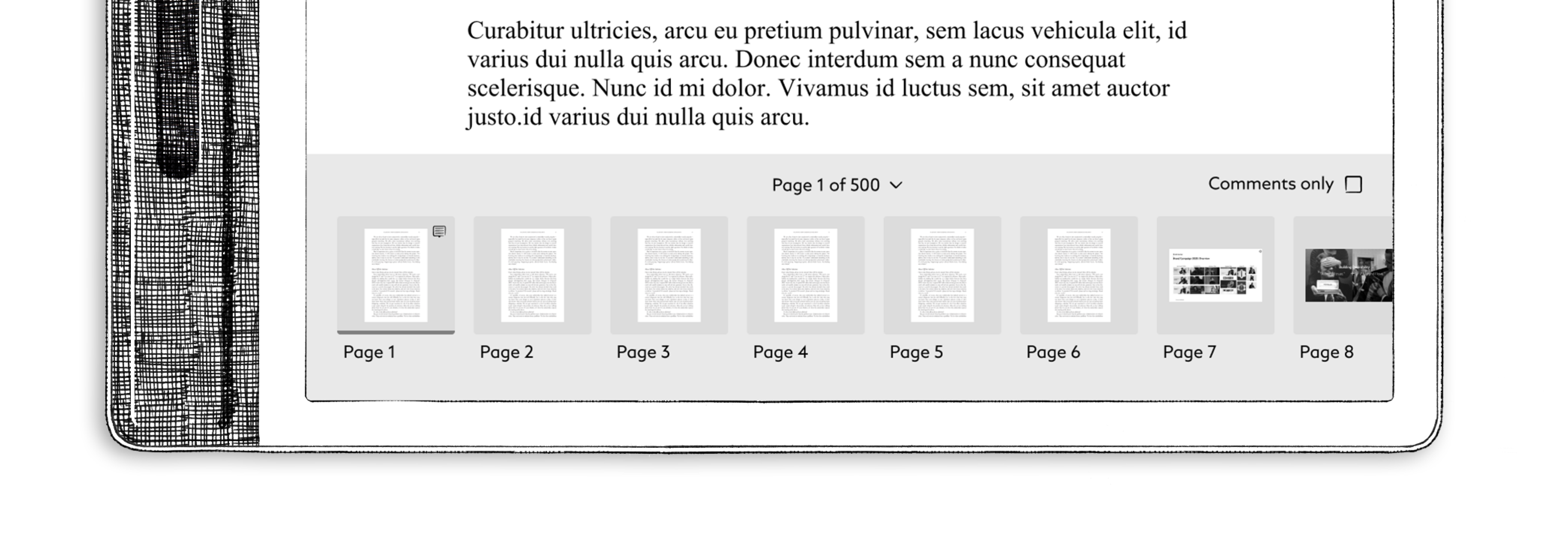 - Thumbnails with comments are marked with a small icon.